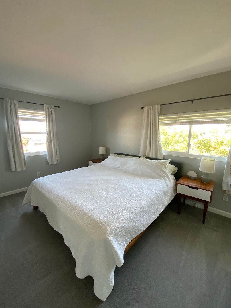 Experience comfort, style, and convenience in this beautifully appointed 3-bedroom, 2.5-bath townhome located in the highly desirable Normal Heights neighborhood of San Diego. Offering 1,268 square feet of thoughtfully designed living space, this two-story end unit is part of a secure, well-maintained four-unit complex providing both privacy and a sense of community. Step inside to find luxury vinyl flooring throughout the main living areas, complemented by a bright and modern kitchen featuring shaker-style cabinetry, stainless steel appliances, and elegant white quartz countertops with matching backsplash. Recessed lighting adds a soft, welcoming ambiance throughout the space. The first floor includes a versatile bedroom perfect for a home office or guest room, along with a conveniently updated half bath. Upstairs, you'll find two spacious dual master suites, each with its own refreshed bathroom, large walk-in closet, and abundant natural light from multiple windows including windows within the closets themselves.