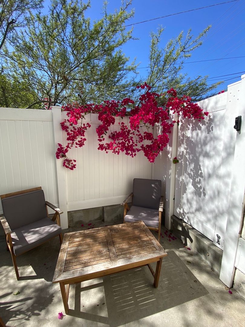 Private patio with newer white vinyl fencing