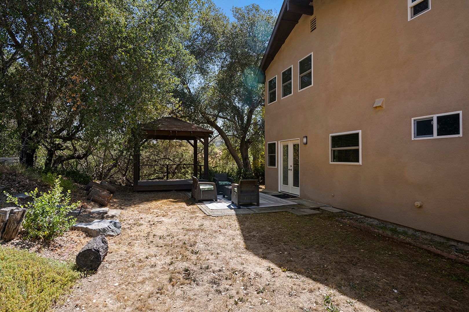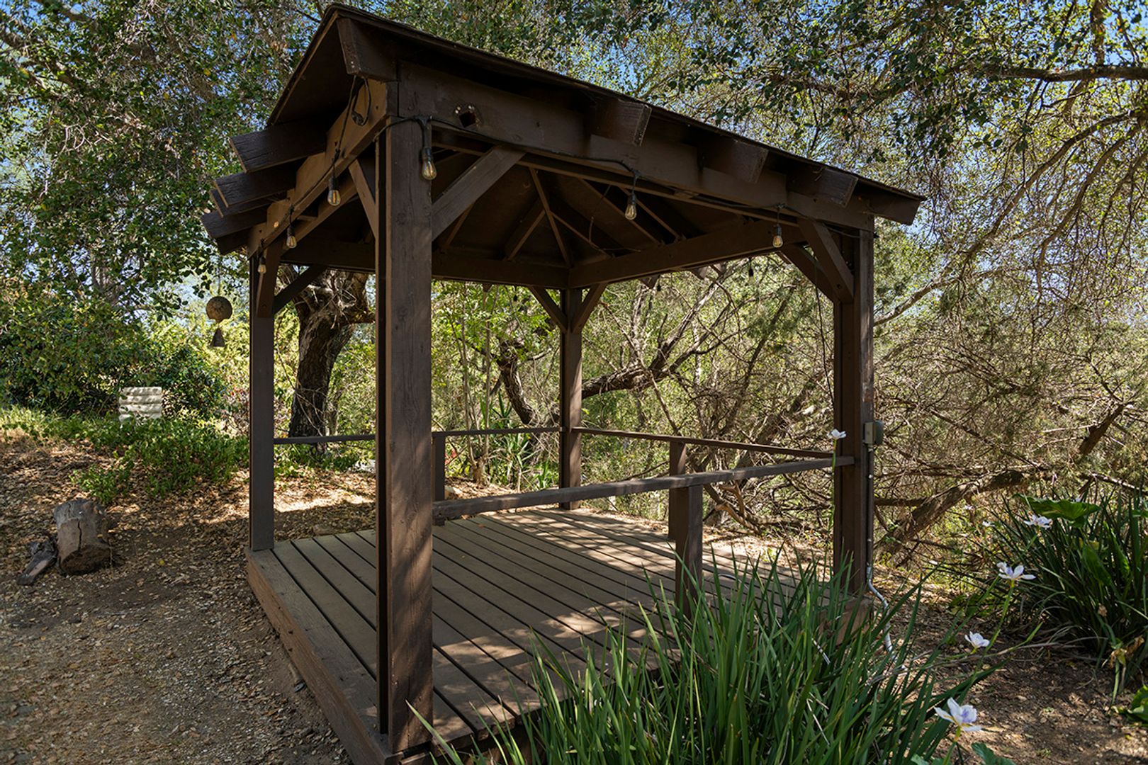 enhances the natural ambiance. A charming gazebo provides the perfect space for a hammock or