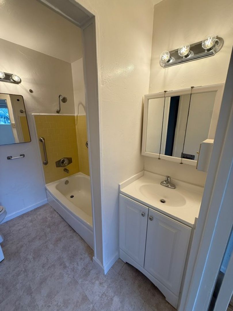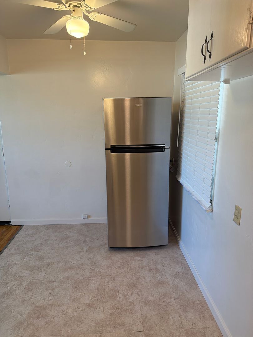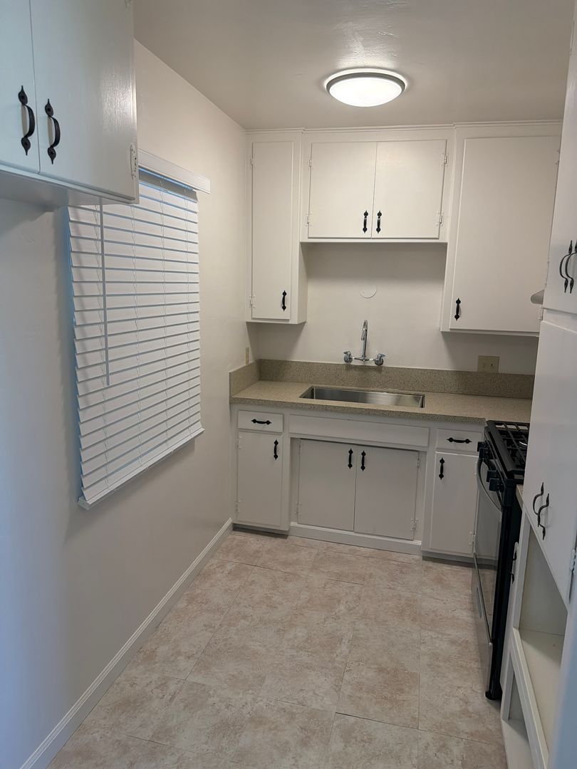 Freshly painted interior throughout. Brand new quartz kitchen countertops. New refrigerator and new stove/oven. Freshly painted kitchen cabinets with new handle pulls and Hardwood/ tile flooring throughout. New blinds installed on all windows. New bathroom vanity. Newly refinished bathtub. Private garage for this unit. Dedicated laundry room with washer and dryer provided.