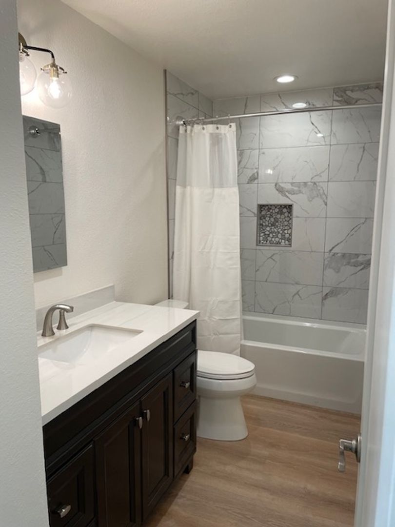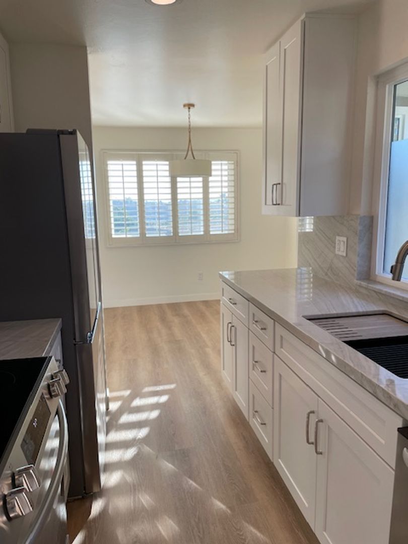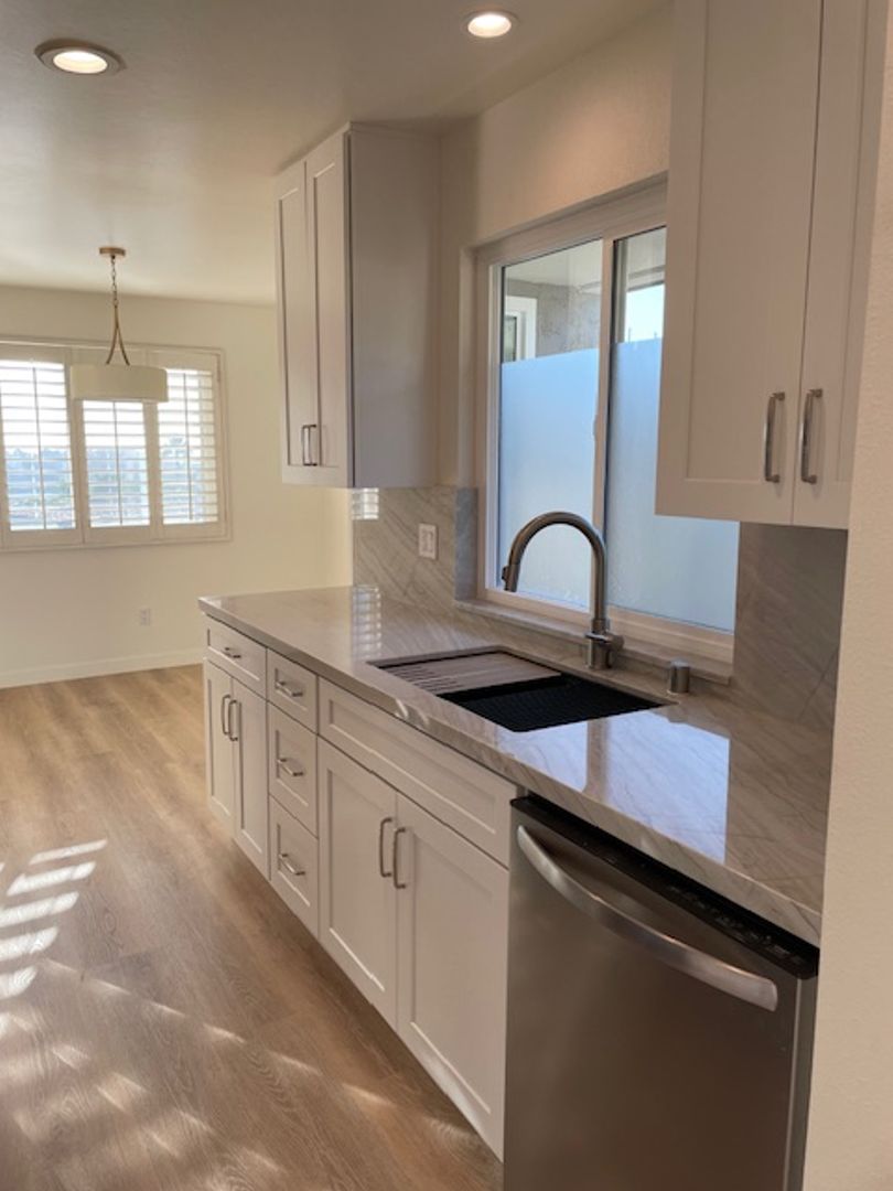 Offered at $3,100 per month and available June 11, 2026, this residence presents a rare opportunity to enjoy modern living in one of San Diego’s most centrally located and vibrant neighborhoods. This light and bright home enjoys a sunny southwestern exposure, capturing natural light throughout the day along with refreshing coastal breezes. Completely renovated just two years ago, the home is in exceptional, like-new condition. The remodel was completed with high-end finishes and attention to detail throughout, including a fully upgraded kitchen and bathroom, luxury plank vinyl flooring, fresh paint, and all new appliances—including an in-unit washer and dryer. Energy-efficient mini-split heating and air conditioning systems have also been installed for year-round comfort. Parking is a standout feature, with both a private one-car garage and an additional carport space—an uncommon and highly desirable combination in this area. Friars Village is known for its beautifully maintained grounds, lush greenbelts, mature trees, and scenic views across Mission Valley. Residents enjoy access to a wide range of resort-style amenities, including a large clubhouse with billiards, a swimming pool and spa, sand volleyball court, tot lot, and more. The location is unbeatable.